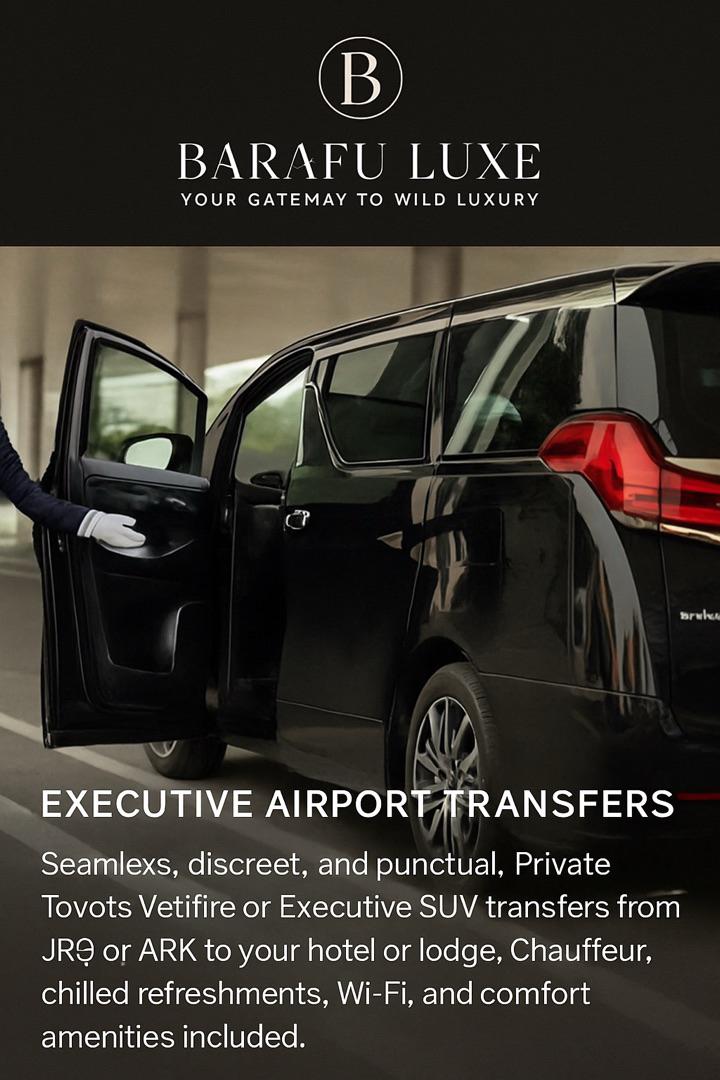 At Barafu Luxe, we believe a journey should be as memorable as the destination. Our private transfers are designed for guests who value comfort, discretion, and elegance. Whether you are arriving for safari, business, or leisure, we ensure that your travel is seamless, timely, and completely private.